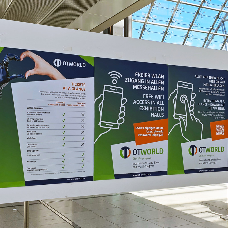 Für die Leipziger Messe (OTWorld 2024) haben wir diverse Beschilderungen, Plakate und komplette Messestände gestaltet.